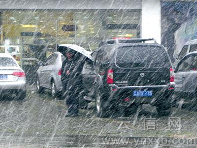 曲靖街頭雪下得很大