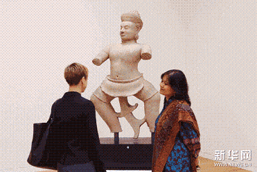 一個10世紀砂巖制的東南亞雕像在美國紐約蘇富比2011年亞洲藝術周拍賣預展上展出