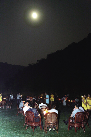 又是一夜君須記,今宵南山更無(wú)眠……昨晚,由市園林局主辦的“采月南山”——中秋賞月晚會(huì),在一段富有詩(shī)情畫意的歡迎辭中拉開了帷幕。 農(nóng)歷八月十六,中秋賞月好時(shí)節(jié)。昨晚,明亮皎潔的月光下,如毯的草坪上,支支搖曳的燭光點(diǎn)綴著南山的夜景。幾十張古典雅致的方桌椅,坐著來(lái)自社會(huì)各界的“見義勇為”代表、“大愛之星”代表、書畫文藝界精英、文明志愿者、風(fēng)景園林建設(shè)者、網(wǎng)民代表等近200人。大家相聚南山,聆聽山水的呼吸,放飛輕松的思緒,品茶、聽樂、寫詩(shī)、作畫,共享花好月圓的美好時(shí)刻。 當(dāng)晚的南山賞月晚會(huì)沒有太多刺眼的燈光,也沒有喧囂的歌舞表演,取而代之的是古琴、簫、揚(yáng)琴、琵琶等民樂演奏。淡雅而纏綿的簫聲從遠(yuǎn)處隱隱傳來(lái),溪邊涼亭內(nèi)身著古裝的文人雅士表演著圍棋對(duì)弈、書畫創(chuàng)作、詩(shī)詞朗誦等傳統(tǒng)的文化藝術(shù),營(yíng)造出了溫馨、高雅,又富有望月抒懷情調(diào)的氛圍。 “哇!感覺自己到了人間仙境!”獲得省見義勇為稱號(hào)的夏國(guó)萍欣賞著眼前的景色,有些出乎意料。她說(shuō),沒想到南山有這樣的美景,而這種賞月的場(chǎng)景也只有在古裝劇中才能看到。夏國(guó)萍每年的中秋節(jié)都是與家人一起吃頓團(tuán)圓飯,參加那么優(yōu)雅的集體賞月活動(dòng)還是第一次,她希望以后多舉辦這樣的活動(dòng),讓更多的人感受中國(guó)的文化,陶冶情操,提高自身的文化內(nèi)涵。 |