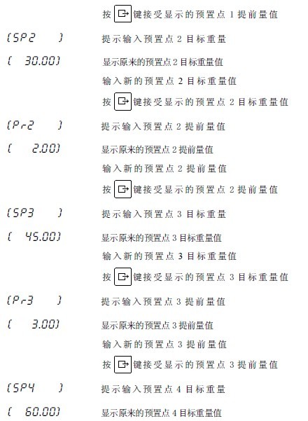 按 鍵,儀表進(jìn)入預(yù)置點(diǎn)參數(shù)輸入方式。按照軟開(kāi)關(guān)設(shè)置參數(shù)42、43 和44的不同設(shè)置,ST300共有8 種組合。兩種常見(jiàn)的設(shè)置方式如下: