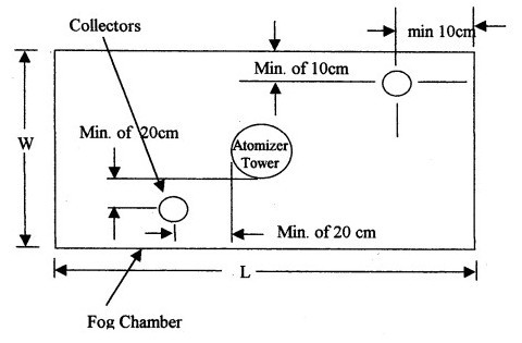 鹽霧試驗(yàn)箱霧化和鹽霧量---在每個(gè)霧化塔暴露區(qū)域內(nèi),至少放入兩個(gè)干凈的鹽霧收集器,不會(huì)收集到測(cè)試樣品上的液滴或其他的液滴。調(diào)整收集器位置使之靠近樣品,一個(gè)離任一噴嘴的位置都近,另一個(gè)離所有噴嘴的位置遠(yuǎn)。圖1是一種典型的布置;谄骄\(yùn)行16小時(shí)基礎(chǔ)上(注釋9),水平收集區(qū)域方向上每80cm2 (12.4in.2),每小時(shí)將收集1.0—2.0ml的溶液。收集的氯化鈉溶液的濃度將達(dá)到5±1%質(zhì)量比(備注9-11)。收集的溶液的PH值將為6.5—7.2,按照8.2所述方法測(cè)量PH值(備注3)。