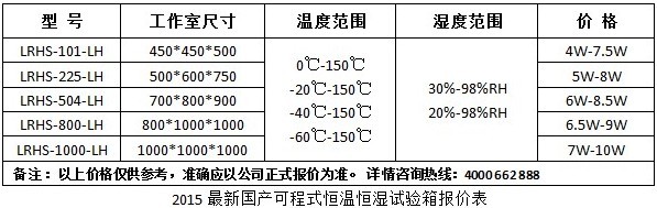 | 2015新可程式恒溫恒濕試驗(yàn)箱報(bào)價(jià)表 |